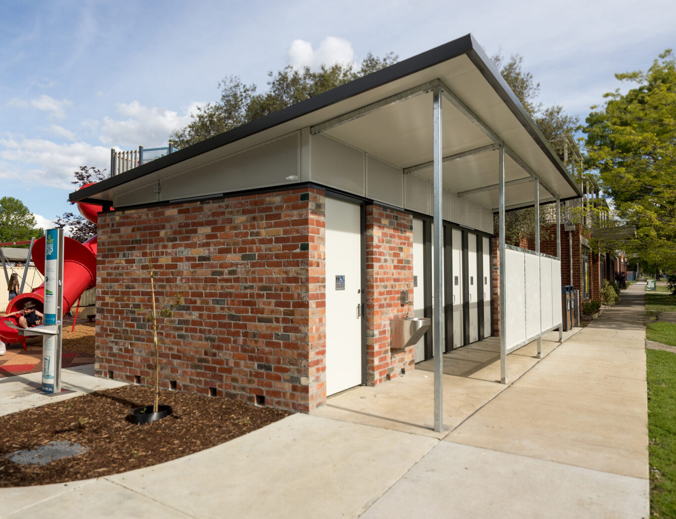 The existing brick amenities building—having served the community for decades—was demolished to allow for a fully compliant, all-abilities facility designed in line with CPTED principles to improve safety, visibility, and hygiene.