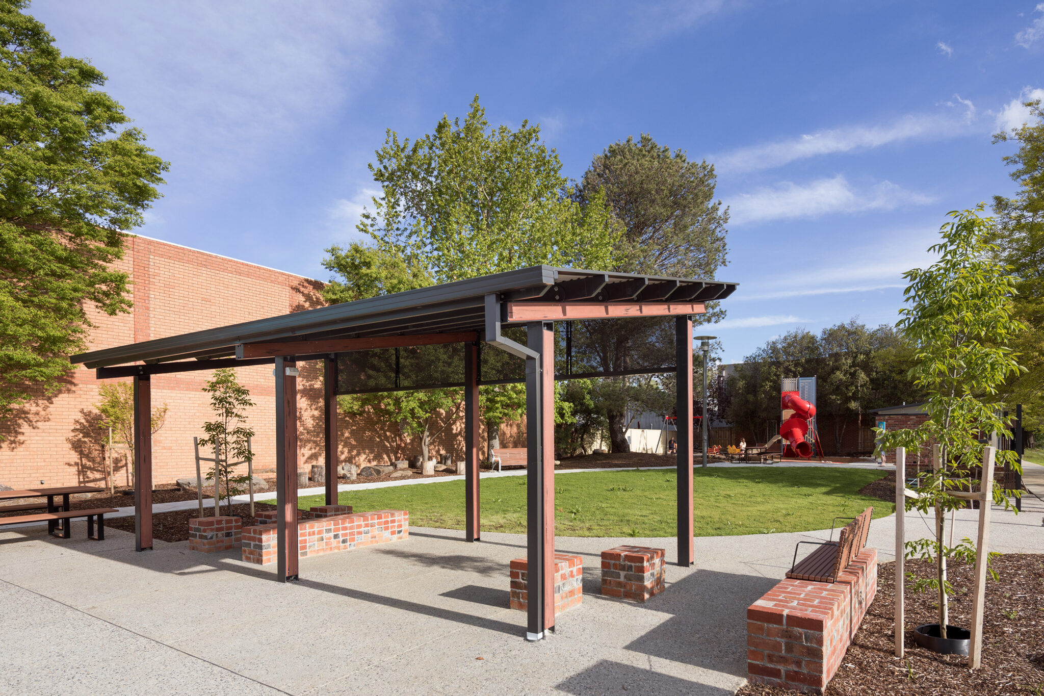 The completed building is a high-quality, durable community asset that reflects the character and history of the area. It features perforated artwork depicting the maple leaf—an iconic element of Moorabool Shire’s branding—creating a strong visual connection to local identity while delivering a safe, attractive and accessible public facility.