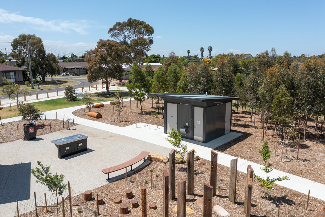 The Landscape Architecture team at Wyndham City Council consulted with Stellar Washrooms during the design of this project. The adjacent playground was installed by Planned Constructions with Wyndham CC project managing the entire project.